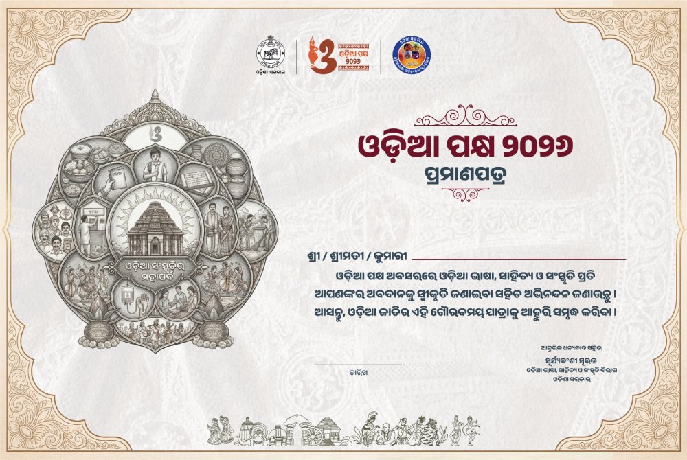 ଓଡ଼ିଶାର ଗୌରବମୟ ଐତିହ୍ୟ, ସଂସ୍କୃତି ଓ ସମୃଦ୍ଧ ପରମ୍ପରାର ନିଚ୍ଛକ ପ୍ରତୀକ ‘ଓଡ଼ିଆ ପକ୍ଷ’। ଏପ୍ରିଲ ମାସ ୧ ତାରିଖ ଓଡ଼ିଶା ଦିବସରୁ ଆରମ୍ଭ କରି ୧୪ ଏପ୍ରିଲ ଓଡ଼ିଆ ନବବର୍ଷ ପର୍ଯ୍ୟନ୍ତ ମହା ଆଡ଼ମ୍ବରରେ ସାରା ରାଜ୍ୟରେ ‘ଓଡ଼ିଆ ପକ୍ଷ’ ପାଳନ ହେଉଛି। ଏହି ଭବ୍ୟ ଓ ଦିବ୍ୟ ସମାରୋହକୁ ଲୋକଙ୍କ ସହଭାଗିତାରେ ପାଳନ କରିବା ପାଇଁ, ବ୍ଲକଠୁ ନେଇ ରାଜ୍ୟସ୍ତରରେ ଓଡ଼ିଶା ସରକାରଙ୍କ ବିଭିନ୍ନ ବିଭାଗ ପକ୍ଷରୁ ଅନେକ କାର୍ଯ୍ୟକ୍ରମ ଆୟୋଜନ କରାଯାଉଛି। ଓଡ଼ିଆ ସାଂସ୍କୃତିକ ମୂଲ୍ୟବୋଧ, ଚାଲି ଚଳଣି, ଗାଥା ଗୌରବ, ଆମ ପରମ୍ପରା, ଆମ ପରିଚୟ ତଥା ଓଡ଼ିଆ ଅସ୍ମିତାକୁ ବିଶ୍ଵବିଦିତ କରିବା ପାଇଁ ଆସନ୍ତୁ ସମସ୍ତେ ଏକ ହୋଇ ପାଳିବା ‘ଓଡ଼ିଆ ପକ୍ଷ’ ।