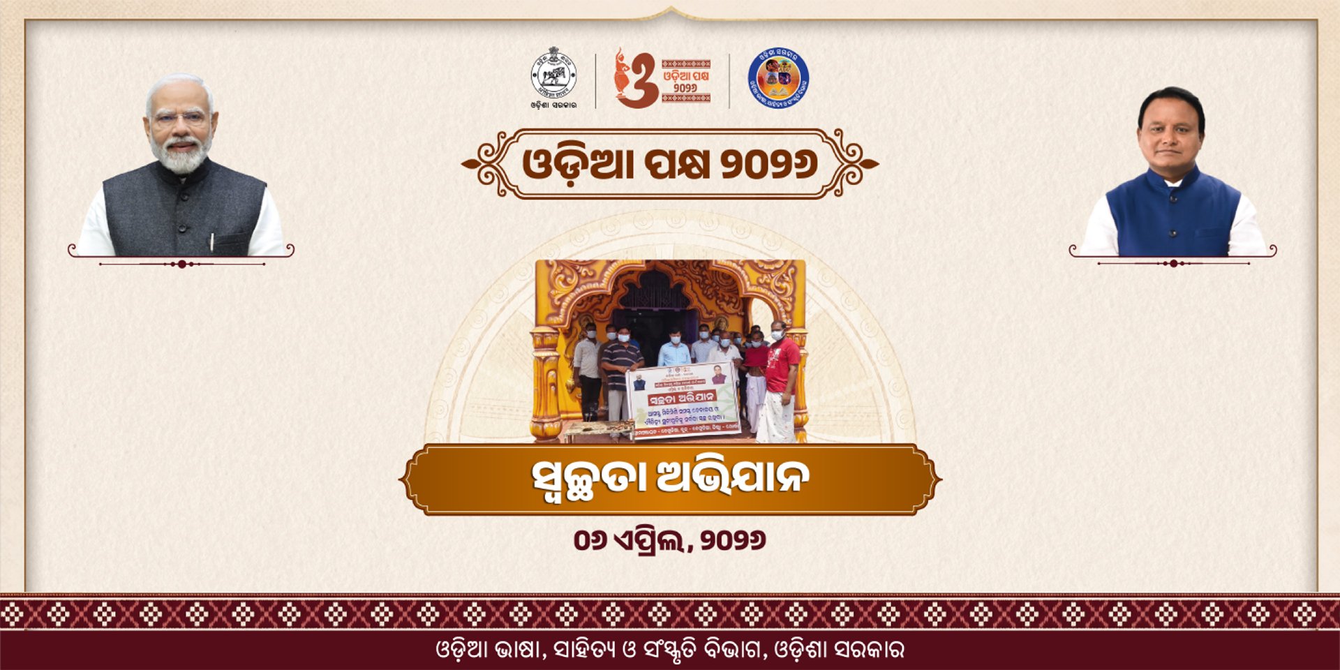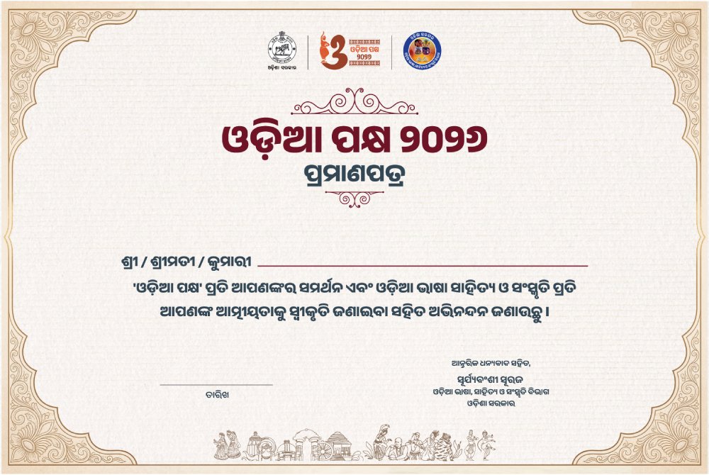 ଓଡ଼ିଶାର ଗୌରବମୟ ଐତିହ୍ୟ, ସଂସ୍କୃତି ଓ ସମୃଦ୍ଧ ପରମ୍ପରାର ନିଚ୍ଛକ ପ୍ରତୀକ ‘ଓଡ଼ିଆ ପକ୍ଷ’। ଏପ୍ରିଲ ମାସ ୧ ତାରିଖ ଓଡ଼ିଶା ଦିବସରୁ ଆରମ୍ଭ କରି ୧୪ ଏପ୍ରିଲ ଓଡ଼ିଆ ନବବର୍ଷ ପର୍ଯ୍ୟନ୍ତ ମହା ଆଡ଼ମ୍ବରରେ ସାରା ରାଜ୍ୟରେ ‘ଓଡ଼ିଆ ପକ୍ଷ’ ପାଳନ ହେଉଛି। ଏହି ଭବ୍ୟ ଓ ଦିବ୍ୟ ସମାରୋହକୁ ଲୋକଙ୍କ ସହଭାଗିତାରେ ପାଳନ କରିବା ପାଇଁ, ବ୍ଲକଠୁ ନେଇ ରାଜ୍ୟସ୍ତରରେ ଓଡ଼ିଶା ସରକାରଙ୍କ ବିଭିନ୍ନ ବିଭାଗ ପକ୍ଷରୁ ଅନେକ କାର୍ଯ୍ୟକ୍ରମ ଆୟୋଜନ କରାଯାଉଛି। ଓଡ଼ିଆ ସାଂସ୍କୃତିକ ମୂଲ୍ୟବୋଧ, ଚାଲି ଚଳଣି, ଗାଥା ଗୌରବ, ଆମ ପରମ୍ପରା, ଆମ ପରିଚୟ ତଥା ଓଡ଼ିଆ ଅସ୍ମିତାକୁ ବିଶ୍ଵବିଦିତ କରିବା ପାଇଁ ଆସନ୍ତୁ ସମସ୍ତେ ଏକ ହୋଇ ପାଳିବା ‘ଓଡ଼ିଆ ପକ୍ଷ’ ।
